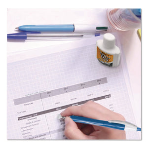 Quickly and easily correct errors on your school and work documents with BIC Wite-Out Brand Quick Dry Correction Fluid. Bright white quick-drying correction liquid works on handwritten and printed ink, faxes, and photocopies like whiteout tape and white out pen. The included applicator is easy to use, while the reduced drying time means you don't have to wait to organize or file your documents after making corrections.