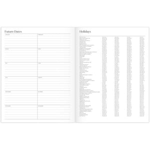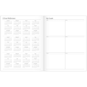 - Special pages include a three-year reference calendar, goals, notetaking pages, future dates and a holiday list.