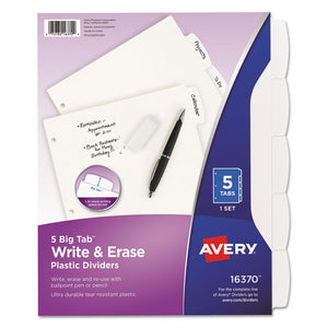 Write and Erase Big Tab Durable Plastic Dividers, 3-Hole Punched, 5-Tab, 11 x 8.5, White, 1 Set