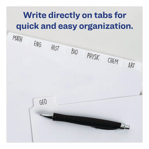 Stay on top of your documents and keep your important paperwork separated with ease using these Plain Tab Write-On Dividers. Identify each section in a flash thanks to nonlaminated tabs you can write on directly. A clear reinforced strip along the binding edge strengthens the three punched holes to resist tearing on your binder's rings. Your documents will be organized and you'll be in charge. Bulk packed for better value.