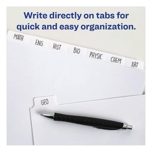 Stay on top of your documents and keep your important paperwork separated with ease using these Plain Tab Write-On Dividers. Identify each section in a flash thanks to nonlaminated tabs you can write on directly. A clear reinforced strip along the binding edge strengthens the three punched holes to resist tearing on your binder's rings. Your documents will be organized and you'll be in charge. Bulk packed for better value.