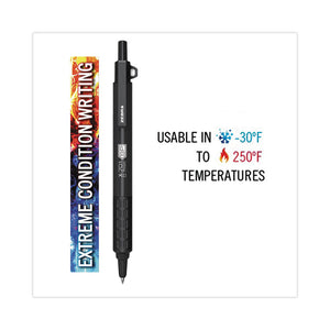 - Pressurized barrel allows the pen to write in temperatures ranging from -30 degrees F to 250 degrees F.