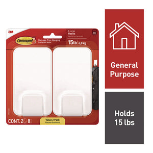 Life is easier when everything has its place. Hang heavy items damage-free with Command Utility Hooks. Command Hooks let you hang what you want, where you want, without the hassle of tools and nails. Command Strips hold strongly on a variety of smooth, finished surfaces, and these adhesive hooks remove cleanly with no sticky residue or damage left behind. Now you can organize your home or office just the way you want with Command X-Large Utility Hooks.