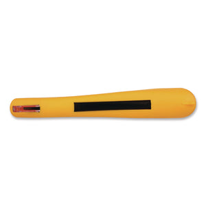 Ensure safety in your warehouse or shipping/receiving department. Blade guard system closes and locks automatically after each use to prevent cuts, punctures and other workplace accidents. Stainless steel blades resist rust and corrosion for enduring quality. Features a lightweight handle that fits comfortably in hand. Bright color makes knives easy to spot in toolboxes and on belts.