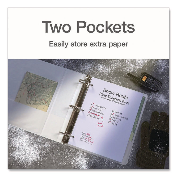 Cardinal® XtraLife® ClearVue™ Binders withstand frigid temperatures. Even in extremely cold weather, covers are guaranteed not to split or tear for three years. Slant-D® rings with nickel triggers hold 25% more sheets than standard round rings. Binders feature ClearVue™ covers for a customized front, back and spine. PVC free.