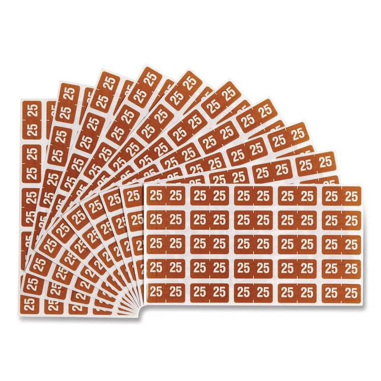 Yearly End Tab File Folder Labels, 25, 0.5 x 1, Brown, 25/Sheet, 10 Sheets/Pack