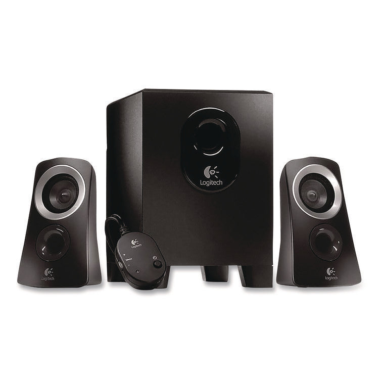 Bring out the best in your favorite playlists and streaming content with this Logitech multimedia speaker and subwoofer set. The 3.5 mm input allows for convenient plug-and-play operation, while the wired control pad lets you easily adjust the volume and power functions. Two satellite speakers and a 15-watt subwoofer combine for clear, detailed sound and big bass. This Logitech multimedia speaker and subwoofer set works with televisions, tablets, computers and smartphones, providing versatile usage options.