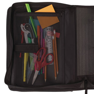 Lasts all year! Guaranteed! A durable build and a water-resistant shell make it so. Between its rings and various storage options, this binder can keep that whole year together in one place, too. Interior zipper pocket keeps your school supplies secure. Zipper-closures, all around, ensure quick and easy access to all of your materials. Durable handle makes carrying it easy, but it slips into a book bag without a hitch, too.